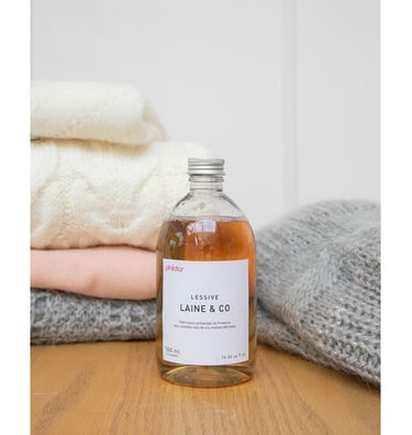 Mezginių skalbimui aš naudoju Phildar „LAINE & CO“ skystą skalbimo priemonę. Šis skystas ploviklis rekomenduojamas visų kašmyro, moheros, angoros, merino mezginių skalbimui. Tai priemonė pagaminta tradiciniu Marselio muilo gamybos budu is Kopra ir alyvų aliejaus, be fosfatų, be anijoninių paviršinio aktyvumo medžiagų, EDTA, BHT, parabenų, PEG , nėra balinimo priemonių, kad būtų užtikrintas geresnis spalvų išsaugojimas, 97% biologiškai skaidoma aplinkoje, todėl draugiškas aplinkai.